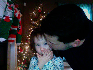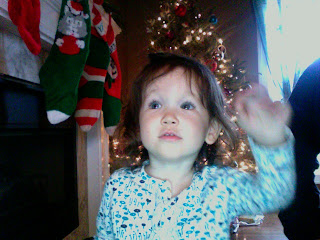 We talked to Ma Ma again today on Skype, so we thought we'd take a few shots in front of the tree. Near the door we have an olive carving of Mary and Jesus. While putting our shoes on, Bella starts waving and saying, "Hi Christ! Bye Christ!" Of course, we were in a rush to get to wherever it was we were going, so it took a few times for us to clue in. Then, I realized that she was talking to the baby Jesus! On Monday, she and Becky made a Red Velvet Cake for Jesus. We were celebrating Christmas with Bible study at The Oak Project. Bella, who can't quite get out "Merry Christmas," kept saying "Happy Happy Christ!"
